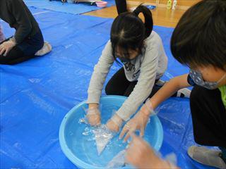 尼崎市歴史博物館のみなさんに来ていただき、3年生が環境教育の一環として、2日間にわたり藍染め体験をします。「思ってたより、すごくうまくいった。」「服とかも作ってみたい。」とても楽しい体験学習になったようです。歴博のみなさん、ありがとうございました。明日もよろしくお願いします。