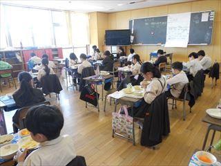 1年生も今日から給食が始まりました。担任の先生の話をきちんと守って、黙食や片付けなど1年生とは思えないぐらい落ち着いた様子でした。 担任以外の先生や調理師さんも、1年生の給食を手助けしてくれています。 |