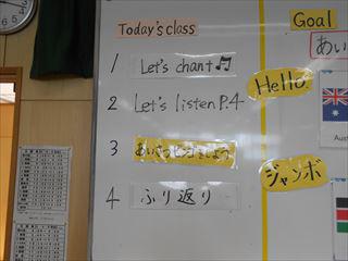 同じ外国語でも6年生は、こんな感じです。「自こしょうかいをしよう」がめあてなので、かなりのレベルアップです。 |