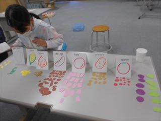 4年生の外国語の学習です。好きな材料を選んでオリジナルのピザを作っていくようです。材料を買うときのやりとりを客側、店側にわかれて英語で話しています。みんなとても楽しそうに活動しているので、「小学生の時にこんな授業があったらなあ。」としみじみ思いました。 できあがったピザは最後の写真です。 |