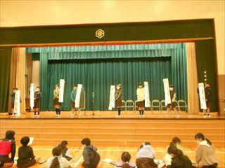 | 明日は、もう3月。6年生は、卒業が少しずつ実感できるようになってきています。今日は、6年生を送る会に向けて学年で練習をしていました。とても立派な態度です。 | |