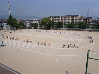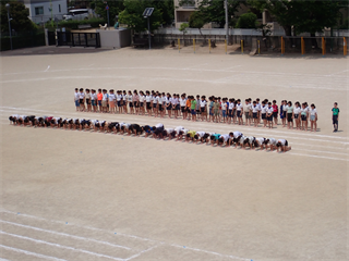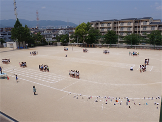 1年生から順に、6年生までの団体演技の隊形は下のような感じですので、参考になさってください。