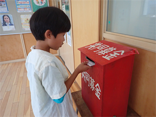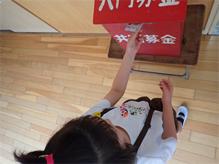 | きのうから、赤い羽根共同募金が始まりました。自分のおこづかいの中から募金してくれた人もいます。みなさんのあたたかい思いが、みんなにやさしい社会をつくっていきます。 | |