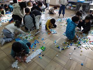 3・4校時は、各学年でテーマを決めて、造形遊びを行いました。