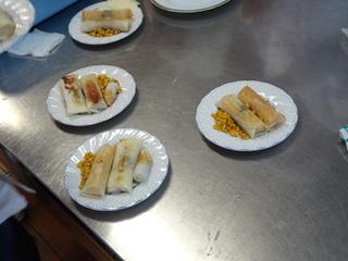 焼き春巻きのグループ、グラタンのグループ、ポテトのベーコン巻きのグループ...