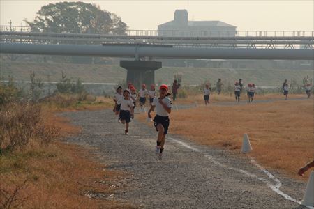 5・6年は2000m、3・4年は1500m、1・2年は1200mの距離に挑戦します。