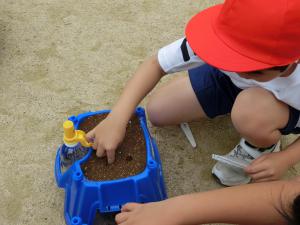 5月15日(水)、1年生が朝顔の種を植えました。朝顔の種は「1年生を迎える会」で、2年生がプレゼントしてくれたものです。今回も6年生のお兄さん、お姉さんが「植木鉢に土を入れる」「土に指で穴を開ける」「穴に種を入れる」「水をあげる」という工程をお手伝いしてくれました。6年生は1年生にやさしく声をかけながらお手伝いをしてくれていました。見ていてほっこりしました。 |