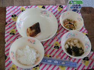 4月10日(木) 2年生~6年生の給食が始まりました。新しいクラスでの初めての給食、メニューは『ごはん、牛乳、さばのみそ焼き、チンゲンサイの煮びたし、若竹汁』です。どのクラスの給食当番も、みんなで協力して準備をすることができていました。久しぶりの給食、子どもたちは「おいしかった」と言っていました。 |
