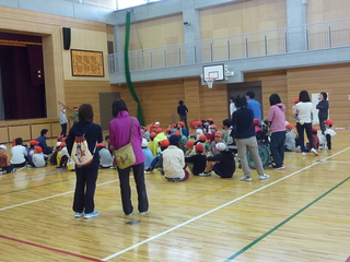 体育館では、クイズ大会やじゃんけん大会をおこなったり、大きな風船で遊んだりと楽しい時間をすごしました。生活科室では、歌を歌ったり、お話を楽しんだりしました。