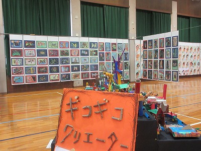 子ども達が、心をこめて作った作品が、体育館に展示されました。
