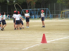 午後からは、5年生が準備体操、リレー、障害物走、大なわをしました。