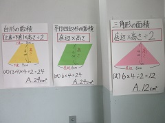 5,6年生の廊下や階段にも公式等いつもこどもたちの目に入るよう貼ってありました。