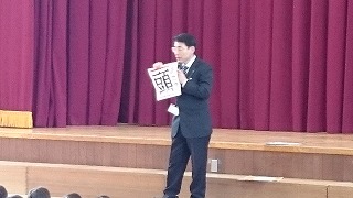 「体」 体を鍛え、健康に気をつけて生活することの大切さ 起立しているのは、1年間 1日たりとも学校を休まなかった子どもたち