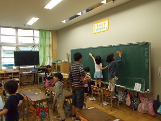 ![]() | みんなで楽しく英語の勉強しました。 ALT(Assistant Language Teacher 外国語指導支援) のマイケル・マッカーシン先生に教えて頂いています。 Hello. My name is . What's your name? 次の授業が楽しみです。 |