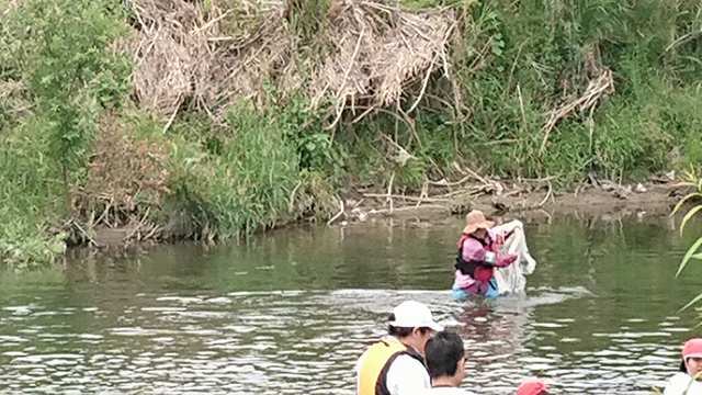 | 投網④ かかったかなー 網を手繰り寄せます |