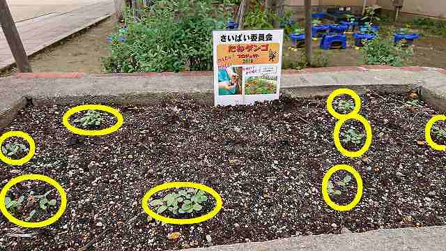 | 手で植付の穴を掘ります。みんなで仲良く取り組みます。 | |