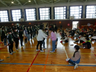☆先日、今年度最後の《きょうだい学級交流会》をしました。 ☆『ペア学年』は、『1年生と6年生』『2年生と4年生』『3年生と5年生』です。 ☆最後となったこの日も、グループで決めた様々な遊びをして「楽しいひと時」を過ごし、良い思い出作りができました。 ☆その様子を写真でご紹介します。 |