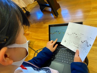 ☆音楽の切付先生が授業でICTを活用して、おもしろい学習をしました。 ☆「song maker」というアプリを使い、6年生が一人1台の「Myタブレット」で、作曲を行いました。操作はとても簡単です。どの子も思いっきり自由な発想で楽しみながら、それぞれの『オリジナルメロディー』を作ることができました。 ☆担任の行本先生が、「山谷教頭先生、今日の音楽で子どもらが作った曲、おもしろいですよ!ちょっと聴いてください。」と言って、子ども達が創作し『ロイロノートに提出した作品』を聴かせてくれました。ジャズのような曲やロックのような曲、なつかしい童謡のような曲など、様々です。聴いていて私も、行本先生も笑顔になりました。その学習活動の様子を写真で紹介します。 |