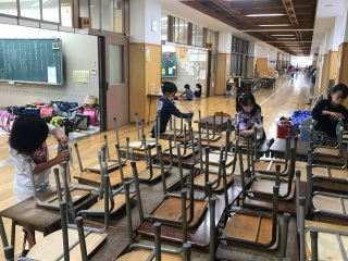 『今からちょうど10年前、午後2時46分に東日本大震災が発生しました。地震の大きさは、マグニチュード9というとても大きく強いものでした。この地震で、東北地方では10メートル以上もの大きな津波が起きました。これは校舎の3階よりも高くなる大きさです。そのため、たくさんの被害が出ました。この地震と津波で亡くなった人や行方が分からなくなった人が約1万8000人、こわれた建物は約40万4800戸におよびました。この震災で犠牲になった方々のご冥福をお祈りするために、今日の午後2時46分に、全員で黙とうをします。』