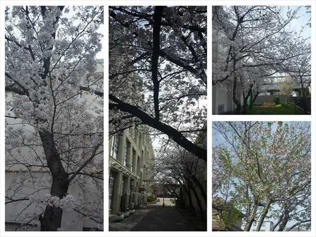 プール前は、五分咲きくらいです。北門前は、七分咲きくらいです。