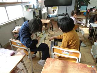 11月28日(木) 1年生が生活科の学習に取り組んでいました。 近隣の幼稚園・保育所の園児たちに向けて、秋のおもちゃランドを開くことを目指しています。 この日は、おもちゃランドがうまくいくように1年生同士でお店屋さんを体験し、アドバイスを送り合いました。 |