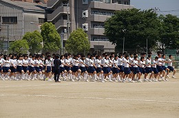 本校は、特に行進やラジオ体操についてはレベルの高い機敏な動きが伝統となっています。
