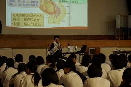 お腹の中で赤ちゃんが動く貴重な映像が流れた時には、生徒達から驚きの声が