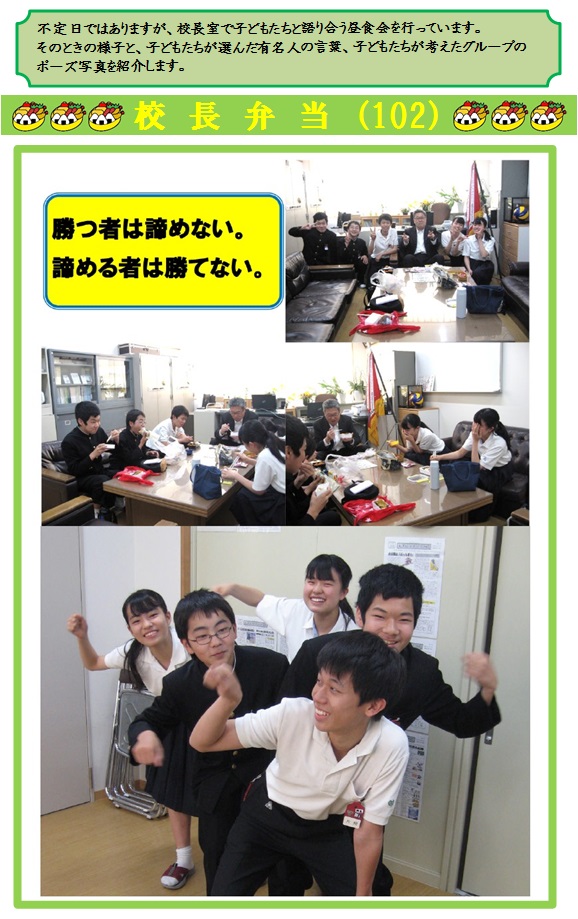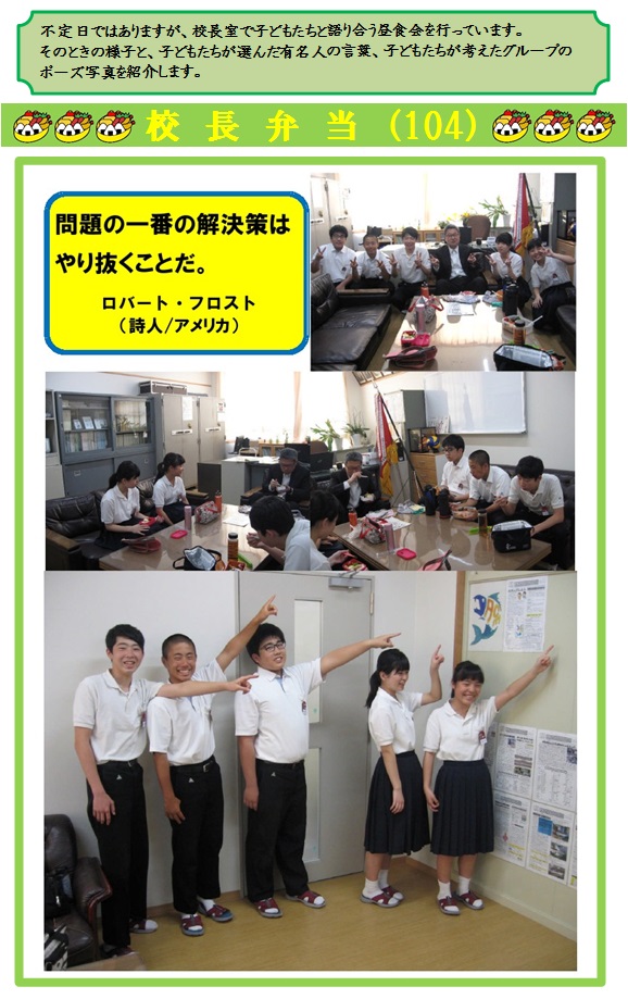 ◆ 3年生と共に語り合う 「校長弁当」 を再開いたしました。