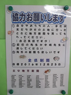 今回は大きく日本地図を描き、【地方新聞を集めよう】という活動をしています。