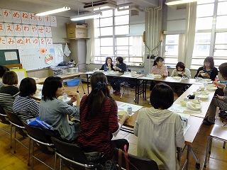 | 参観日に実施された【給食試食会】。 13名の保護者の方に参加していただきました。 本校は単独調理・委託炊飯の調理方式をとり、4名の調理師さんと栄養教諭指導のもと、心のこもった手作りによる楽しい給食を目指して、衛生面や食材の安全対策の徹底を図り、食事内容等の充実に努めています。 食育という言葉が話題になってずいぶん経ちますが、現在は、食の指導を進める観点からも給食の時間は大切にされています。 特に尼養では【給食時間】を【摂食指導】という時間に設定し、児童生徒との大切なかかわりの時間としてとらえています。 給食メニューを決定する献立委員会では、素材の食感、再調理のによる口当たりや食材の粘り等も含め、市内小学校で扱うメニューではなく、独自に栄養教諭を中心に尼養メニューを作っています。 |
