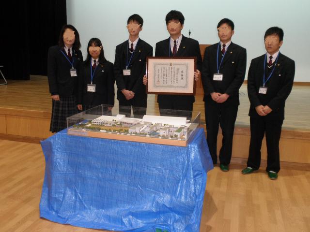 兵庫工業高校建築科の模型を作っていただいたチームの方に感謝状をわたしました。